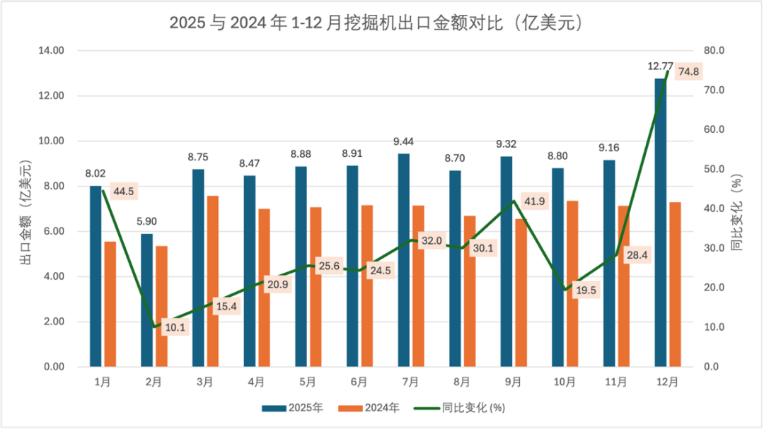 2025 मध्ये, चीनच्याउत्खनननिर्यात बाजाराने "वर्षभर सातत्यपूर्ण सुधारणा आणि डिसेंबरमध्ये अंतिम स्प्रिंट" असे एक वेगळे वैशिष्ट्य प्रदर्शित केले आहे, ज्यामध्ये निर्यातीचे प्रमाण आणि मूल्य या दोहोंनी वर्ष-दर-वर्ष लक्षणीय वाढ साधली आहे, परदेशी बाजारपेठांमध्ये मजबूत स्पर्धात्मकता प्रदर्शित केली आहे.