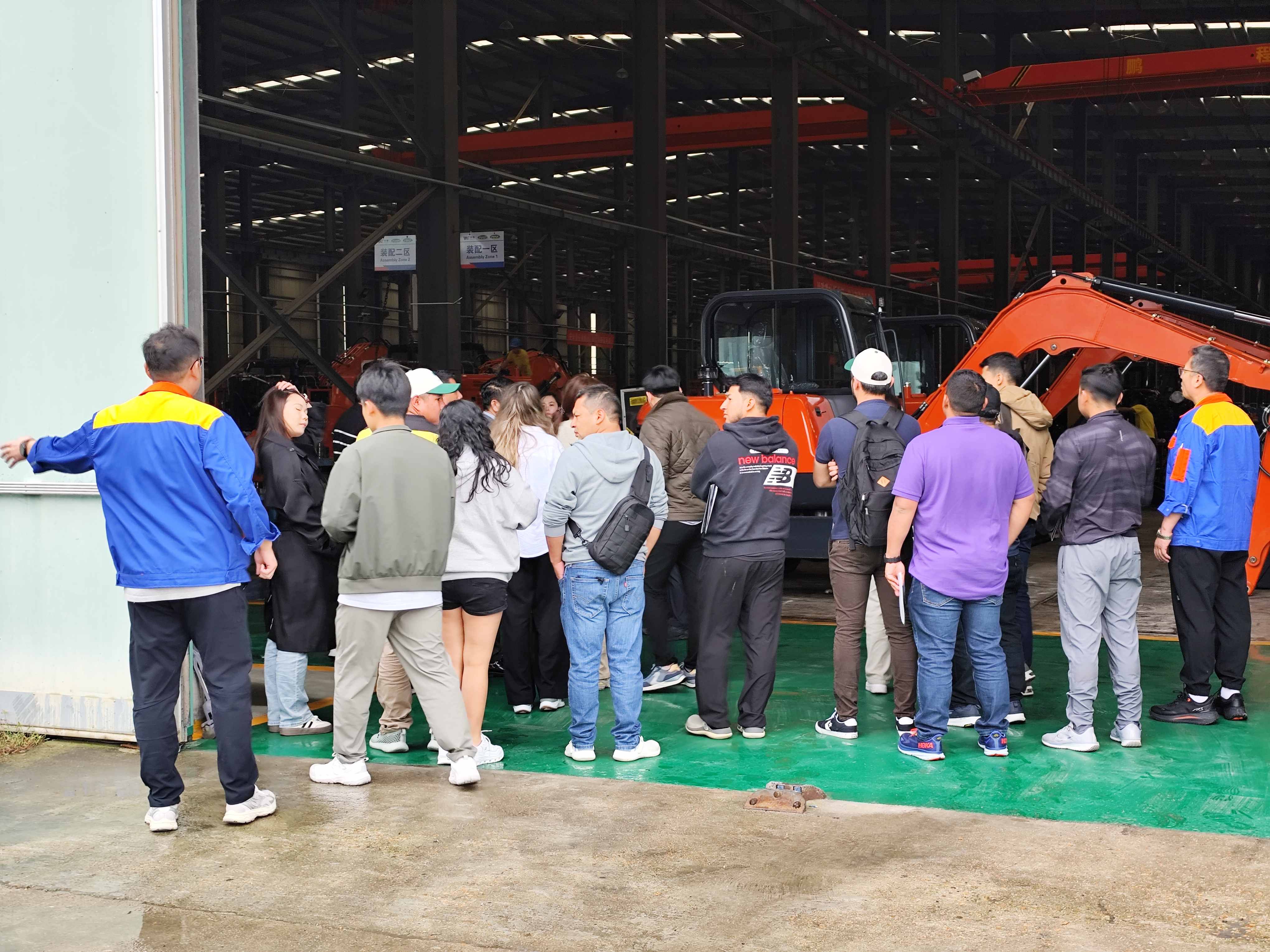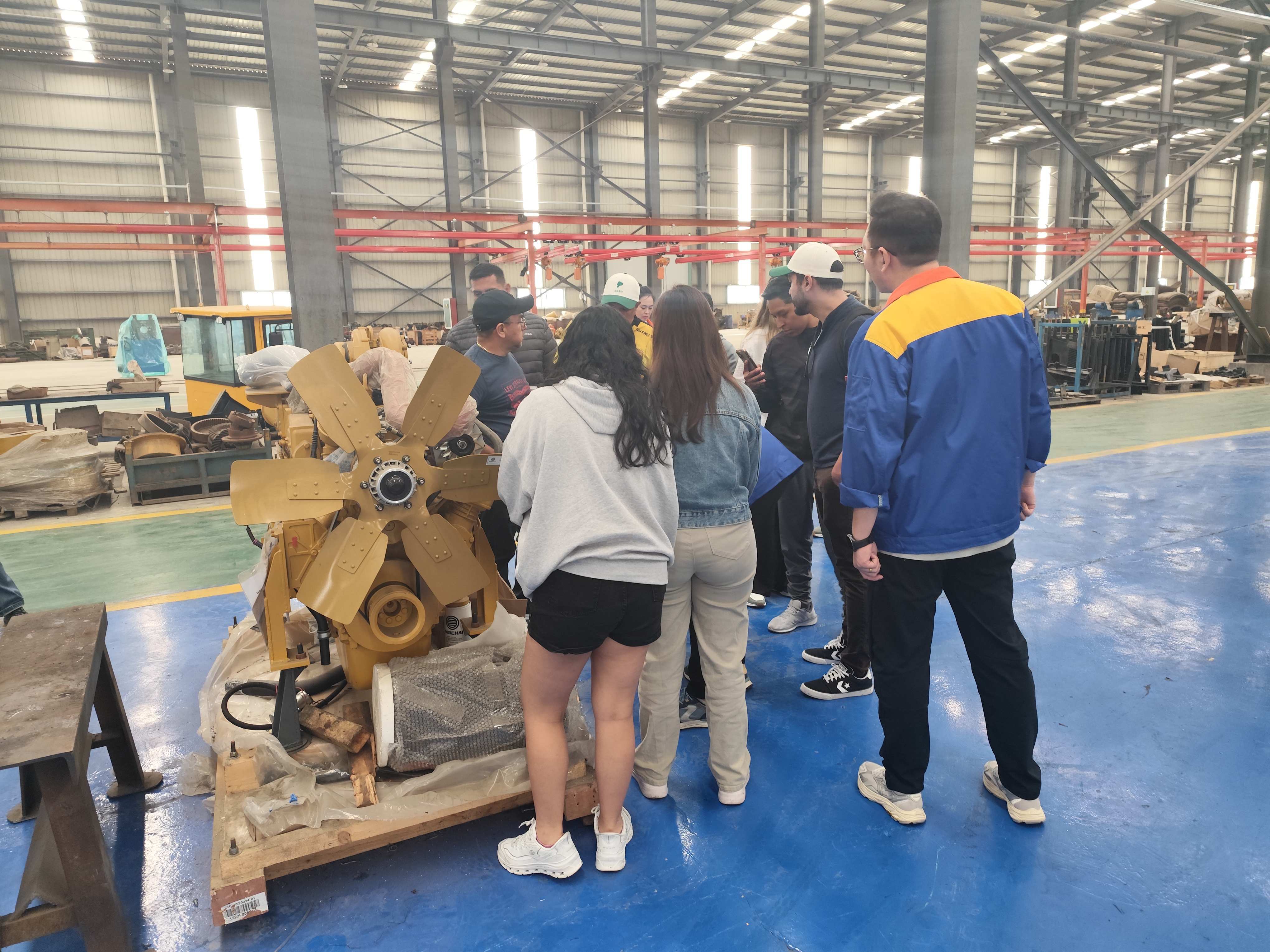 भेटीच्या पहिल्या दिवशी, कंपनीचे चेअरमन आणि वरिष्ठ व्यवस्थापन संघाच्या उत्साही साथीने, ग्राहक शिष्टमंडळाने कंपनीच्या मुख्य उत्पादन क्षेत्राला सखोल भेट दिली. शिष्टमंडळाने मोठ्या प्रमाणात उत्पादन प्रदर्शन क्षेत्रांचे निरीक्षण करण्यावर लक्ष केंद्रित केलेक्रॉलर उत्खनन करणारे, व्हील लोडर, आणि स्किड स्टीयर लोडर. आमच्या वरिष्ठ अभियांत्रिकी कार्यसंघाने संपूर्ण प्रक्रियेदरम्यान व्यावसायिक द्विभाषिक स्पष्टीकरण दिले, उत्पादनाची रचना संकल्पना, मुख्य तांत्रिक मापदंड, कामकाजाच्या परिस्थितीशी जुळवून घेण्याची क्षमता आणि देखभालीचे मुद्दे तपशीलवारपणे स्पष्ट केले. ग्राहकांनी उच्च पातळीवरील व्यावसायिक स्वारस्य दाखवले आणि विविध उंची, आर्द्रता आणि मातीच्या परिस्थितीत उपकरणांचे कार्यप्रदर्शन आणि इंधन वापर डेटाबद्दल अनेक विशिष्ट प्रश्न उपस्थित केले. आमच्या अभियंत्यांनी त्यांच्या व्यावसायिक तांत्रिक कौशल्यावर आधारित समाधानकारक उत्तरे दिली.