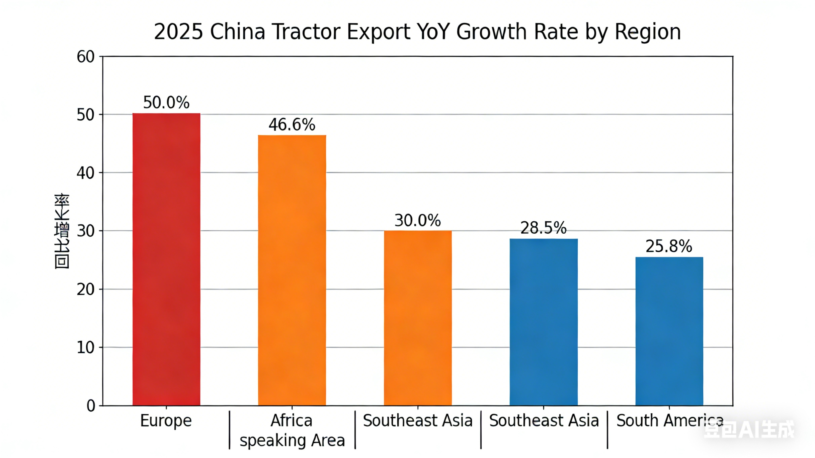 प्रादेशिक वितरणाच्या दृष्टीकोनातून, "बेल्ट अँड रोड इनिशिएटिव्ह" च्या बाजूने असलेले देश चीनच्या कृषी यंत्रसामग्रीच्या निर्यातीचे मुख्य गंतव्यस्थान बनले आहेत, जे एकूण 60% पेक्षा जास्त आहेत. त्यापैकी, ASEAN हा चीनच्या कृषी यंत्रसामग्रीचा सर्वात मोठा व्यापार भागीदार बनला आहे, ज्याचा एकूण निर्यातीपैकी 30% वाटा आहे. इंडोनेशियाला होणारी निर्यात वार्षिक 121.07% वाढली आहे. उदयोन्मुख बाजारांनी विशेषतः चांगली कामगिरी केली आहे. आफ्रिकन बाजाराने संपूर्ण वर्षभरात 46.6% चा वार्षिक वाढीचा दर पाहिला, जो सर्वात वेगाने वाढणारा प्रादेशिक बाजार बनला. मध्य आशियाई बाजाराने लक्षणीय वाढ दर्शविली. 2025 च्या पहिल्या सहामाहीत, मध्य आशियामध्ये चिनी कृषी यंत्रसामग्री आणि घटकांचे एकूण निर्यात मूल्य 6.6 अब्ज यूएस डॉलर्सवर पोहोचले आहे, ज्यात वार्षिक 32.6% वाढ झाली आहे. उझबेकिस्तान आणि कझाकस्तान सर्वात वेगाने वाढणारी उदयोन्मुख बाजारपेठ बनले. त्यापैकी, उझबेकिस्तानमधील कृषी यंत्रांच्या आयातीत 256.77% वाढ झाली आहे. लॅटिन अमेरिकेतील निर्यातीत वार्षिक 15.2% वाढ झाली आहे. अर्जेंटिनाच्या बाजारपेठेत कृषी वाहनांची निर्यात पाच अंकी टक्क्यांनी वाढली. पारंपारिक युरोपियन बाजारपेठेत, जर्मनी आणि पोलंडमधून कृषी यंत्रसामग्रीच्या आयातीचा वाढीचा दर 100% पेक्षा जास्त आहे. पहिल्या 10 महिन्यांत बागायती आणि चारा यंत्रसामग्रीची युरोपला निर्यात 3.67 अब्ज यूएस डॉलर्सवर पोहोचली आहे, ज्यात वार्षिक 32.3% वाढ झाली आहे. जर्मनी, नेदरलँड्स आणि युनायटेड किंग्डम यांसारख्या देशांमधून आयात वाढतच गेली. यूएस आणि कॅनडाच्या बाजारपेठांमध्ये, EPA-प्रमाणित कृषी यंत्रसामग्री उत्पादनांची निर्यात सातत्याने प्रगती करत होती, ज्यामुळे चीनच्या कृषी यंत्रसामग्रीला जागतिक पातळीवर उच्च पातळीवर जाण्यासाठी एक महत्त्वाचा प्रगतीचा मुद्दा बनला. अमेरिकेला काही उत्पादनांच्या निर्यातीत थोडीशी घट झाली असली तरी ही घसरण अपेक्षेपेक्षा कमी होती आणि एकूण परिस्थिती स्थिर राहिली. याव्यतिरिक्त, रशिया आणि स्वतंत्र राज्यांच्या राष्ट्रकुलमधील बाजारपेठा सतत गरम होत राहिल्या. रशियाला धान्य प्रक्रिया आणि कुक्कुटपालन यंत्रांच्या निर्यातीने वेगवान वाढीचा दर राखला आहे, वर्षानुवर्षे रशियामध्ये अंदाजे 30% वाढ झाली आहे.
